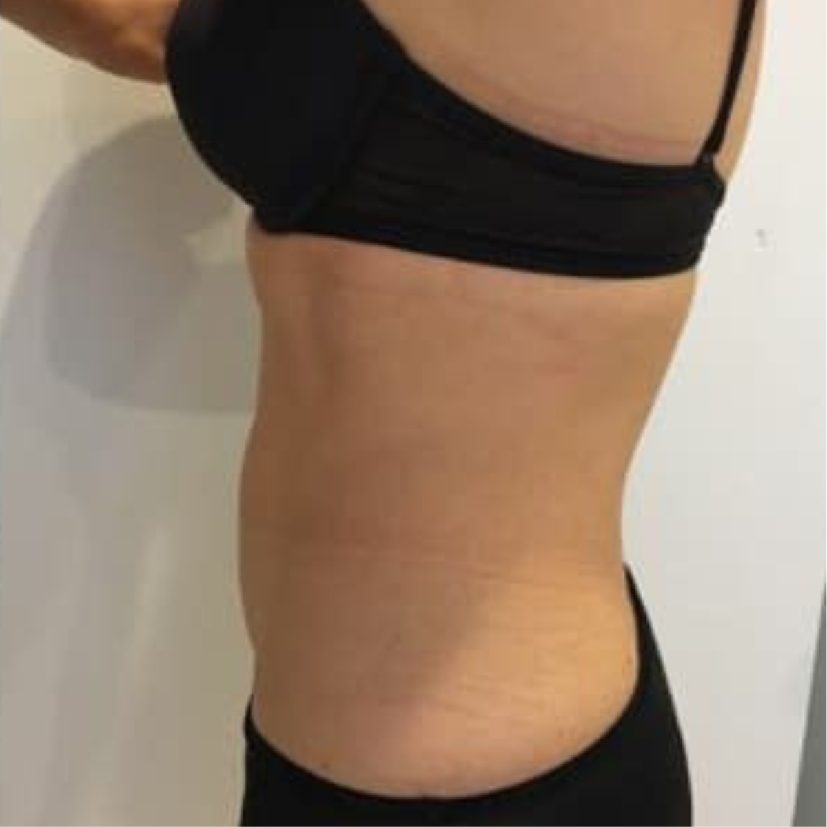 "De profil, la différence est bluffante. J'avais ce petit bourrelet au bas du ventre qui ne partait jamais. En utilisant la SculptX Pro régulièrement, j'ai réussi à aplatir cette zone. J'ai beaucoup misé sur la radiofréquence à la fin des séances pour bien retendre la peau, et ça a marché : le ventre est plat et la peau ne pend pas. Ravie !"